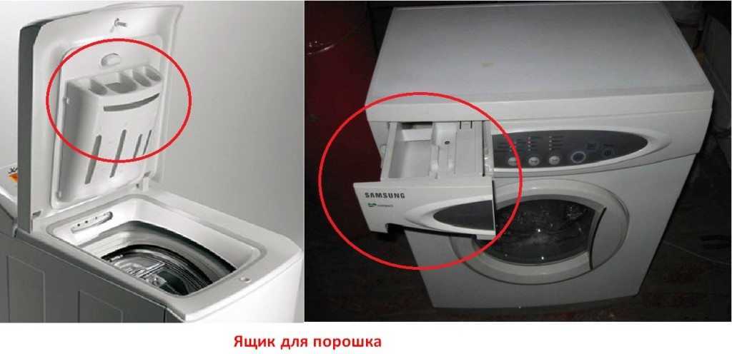 У машин с вертикальной загрузкой ячейки для стирального порошка, кондиционера и других средств имеет большие параметры, нежели у фронтальных автоматов