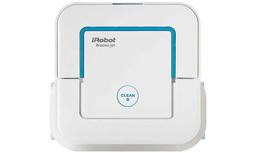 Во время работы аппарат отображает текущее состояние с помощью светосигнальных огней. Единственная кнопка управления обеспечивает ручное управление irobot brava jet 240. Набор функций с механической кнопки ограничен. Эффективное командование возможно через фирменное приложение для популярных мобильных систем. Робот взаимодействует с софтом через Wi-Fi или Bluetooth.