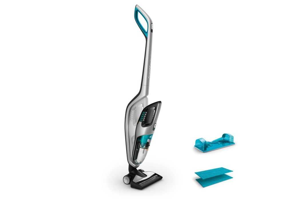 Поддерживает сухую и влажную уборку, имеет съемную трубу. Оснащен хорошим мотором, высокоемким аккумулятором и многоступенчатой циклонной камерой. Подходит для любых видов покрытий. Укомплектован тремя насадками. Для влажной уборки предусмотрена емкость с магнитами, а также съемная насадка из микрофибры. Рассчитан на час непрерывной работы после 8 часов подзарядки.