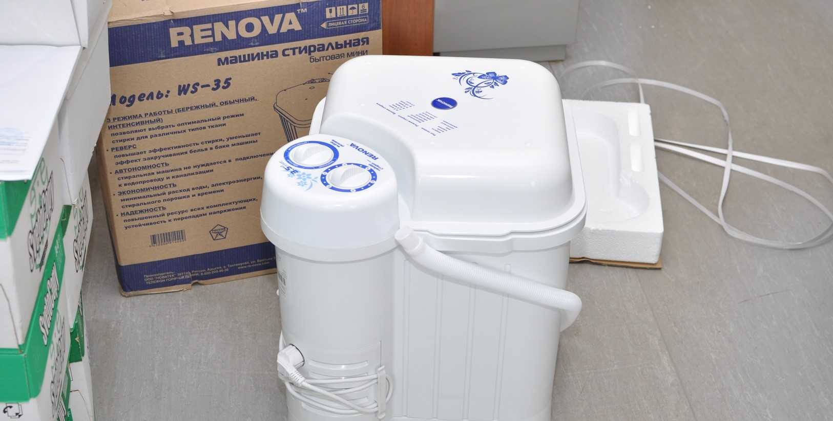 Продолжает рейтинг активаторная стиралка RENOVA WS-35E. Судя по реальным отзывам, машинка стирает быстро и хорошо. Основные характеристики модели: