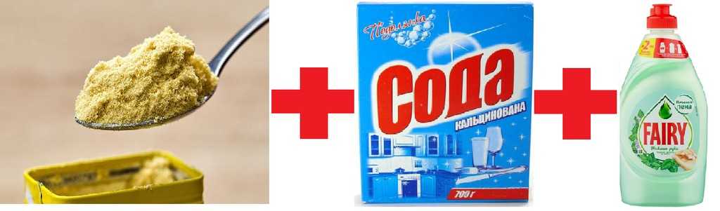 Для приготовления необходимо растворить около 150 гр. горчичного порошка в небольшом количестве кипятка до консистенции густой кашицы. Затем к полученной смеси добавить 200 гр кальцинированной соды.