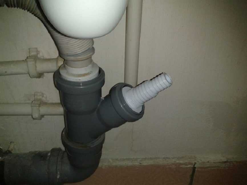 Альтернативным способом подключения к канализации является использование дополнительного тройника в сливе раковины.