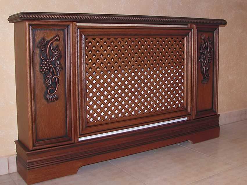 Декоративные решетки из дерева для отделки радиаторов с разными рисунками, включая восточный орнамент, популярны в современном интерьере.
