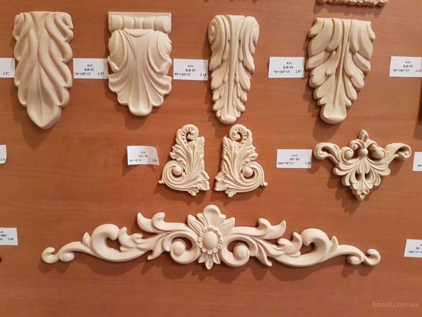Капители – венцы, верхние ажурно-выпуклые части мебели, стены, колонны или двери. Всегда смотрятся торжественно и элегантно. Заказать из дерева, сделать тонировку и покрыть лаком сможет любая древесная мастерская по вашему эскизу.