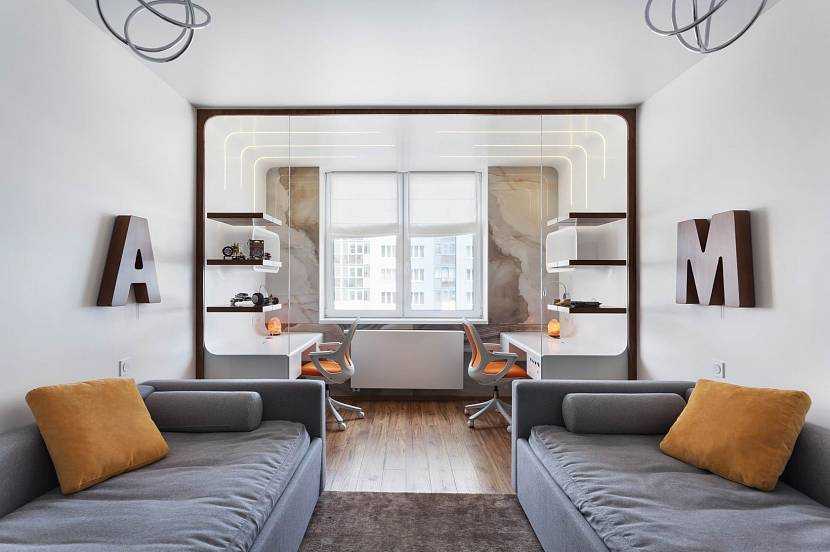 Комната для двоих детей должна прослужить как можно дольше, поэтому выбирают нейтральную цветовую схему.
