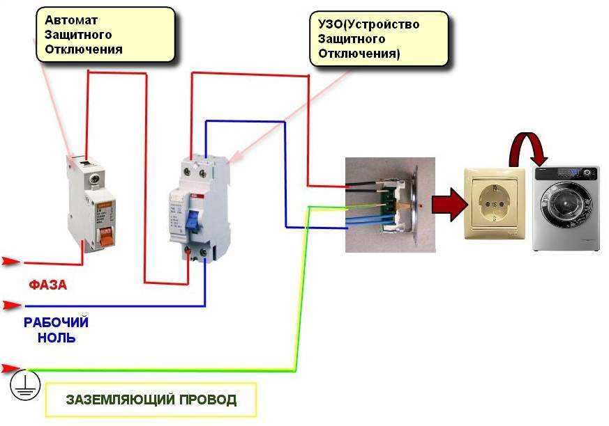 Современные модели стиральных машин имеют довольно солидную мощность, которая в среднем составляет около 2,5 кВт. Несмотря на наличие двойной изоляции, эти приборы являются источниками повышенной опасности. Поэтому их подключение надо производить через отдельный автомат с УЗО (устройством защитного отключения), обязательно и наличие заземления.