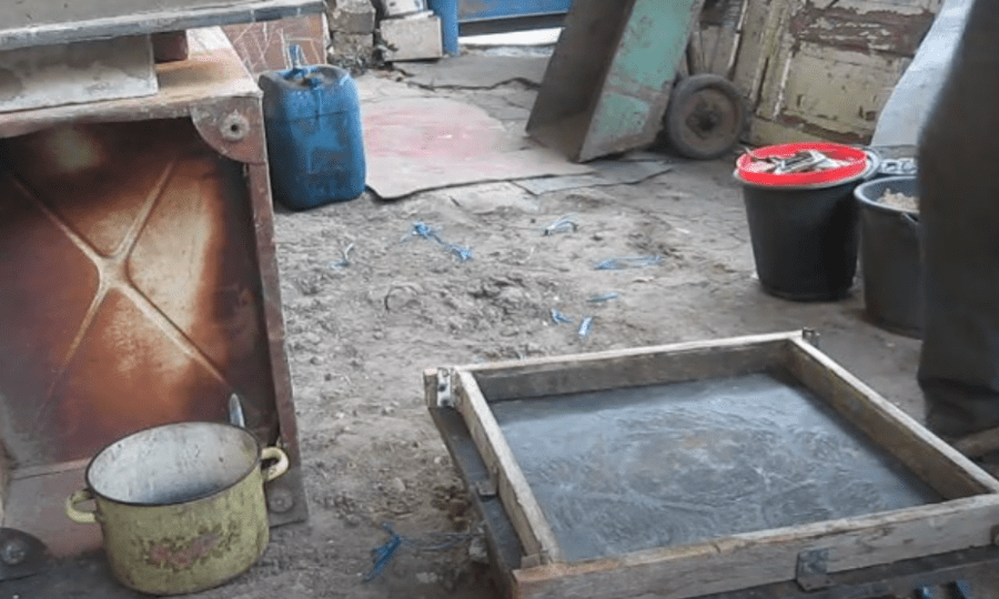 - Если необходимо сделать большой объем раствора, то весь состав надо размешивать при помощи миксера. Самым дешёвым вариантом является шаблон из дерева. Разумеется, много плиток сделать с помощью него не получится, но можно будет сэкономить деньги на пластике или силиконе.