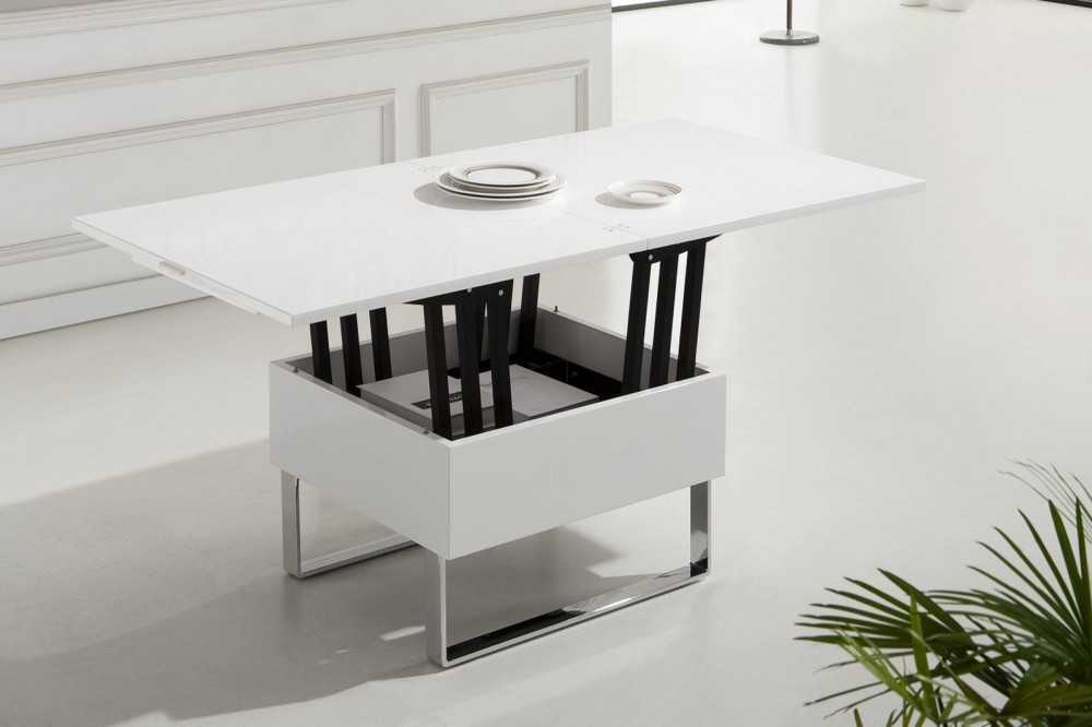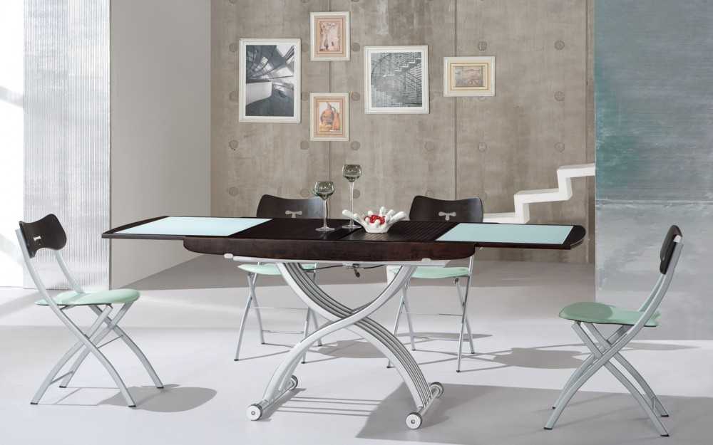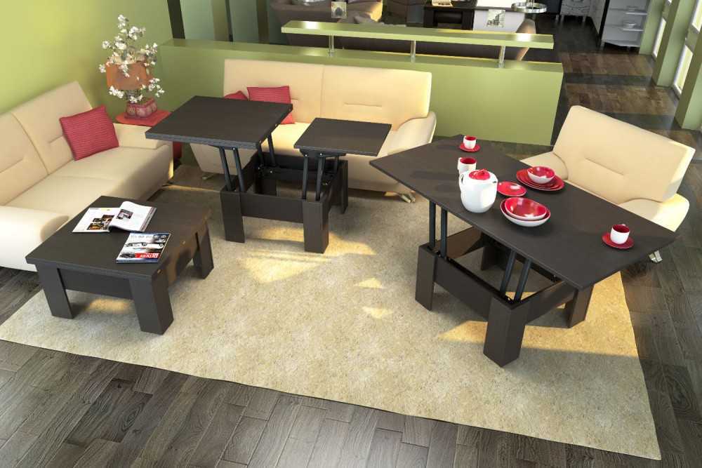 Ничуть не меньше моделей трансформируемых столов. Для гостиных хороши журнальные столы-трансформеры, которые раскладываются в обеденный. Пара движений и гостиная превращается в столовую.