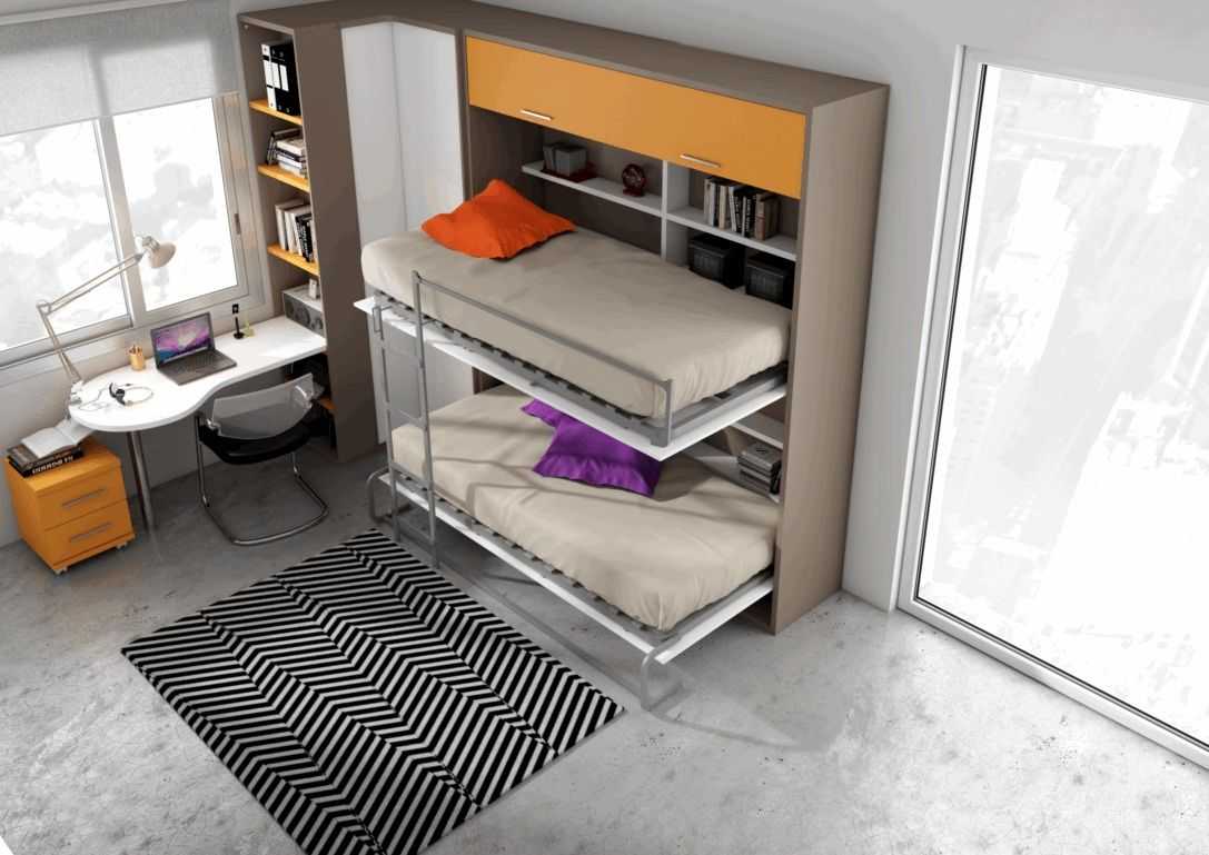 горизонтальная откидная кровать для миниатюрной детской комнаты