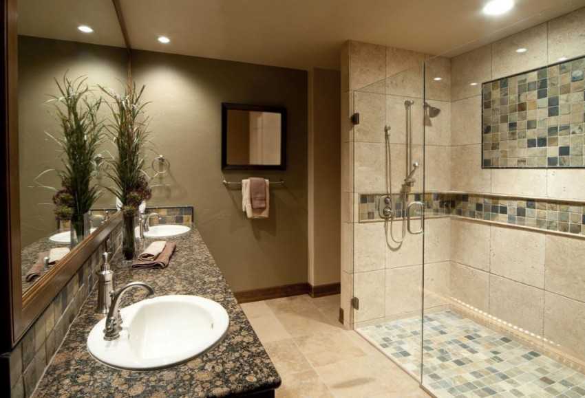 Интерьер ванной комнаты не пострадает, если поставить там одновременно и ванную, и душ, но это в том случае, если комната большая. Иногда вместо душевой кабины оставляют открытой пространство, где есть небольшое искривление в полу – для слива воды.
