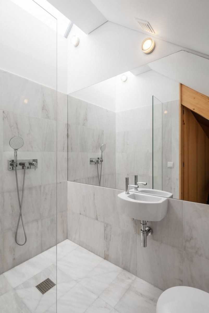 Ванная в стиле лофт притягивает сочетанием грубых фактур. Эффектная интерпретация промышленного объекта. Сочетание плиток под бетон и кирпич.