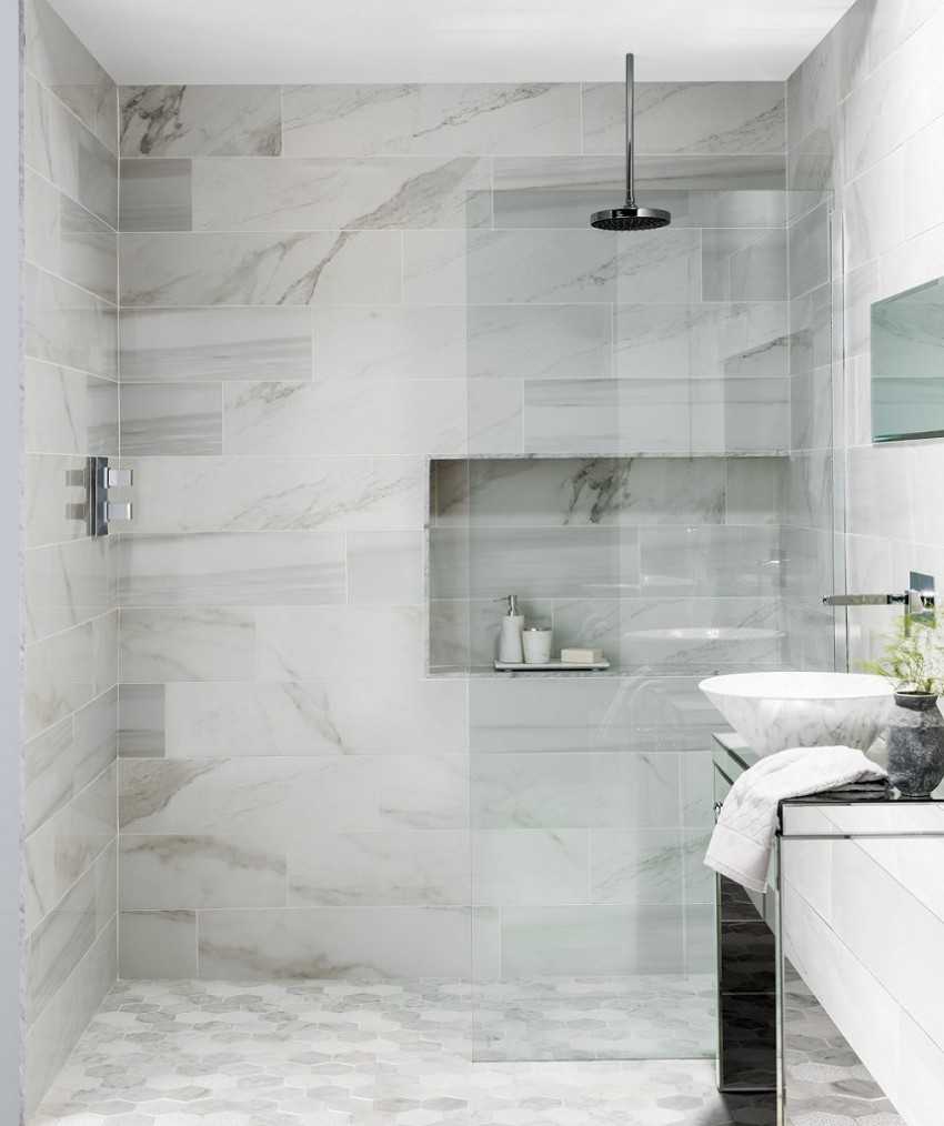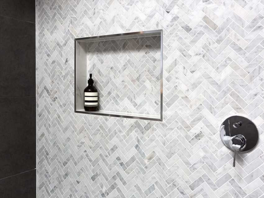 Лучше избежать полок-ниш в стене, сделанных с помощью керамической плитки.