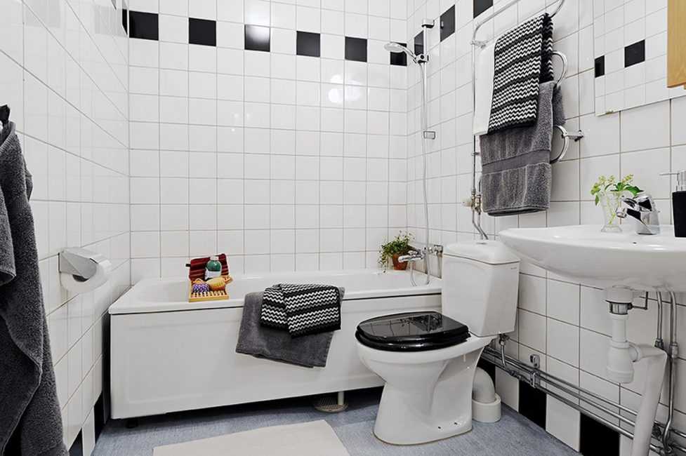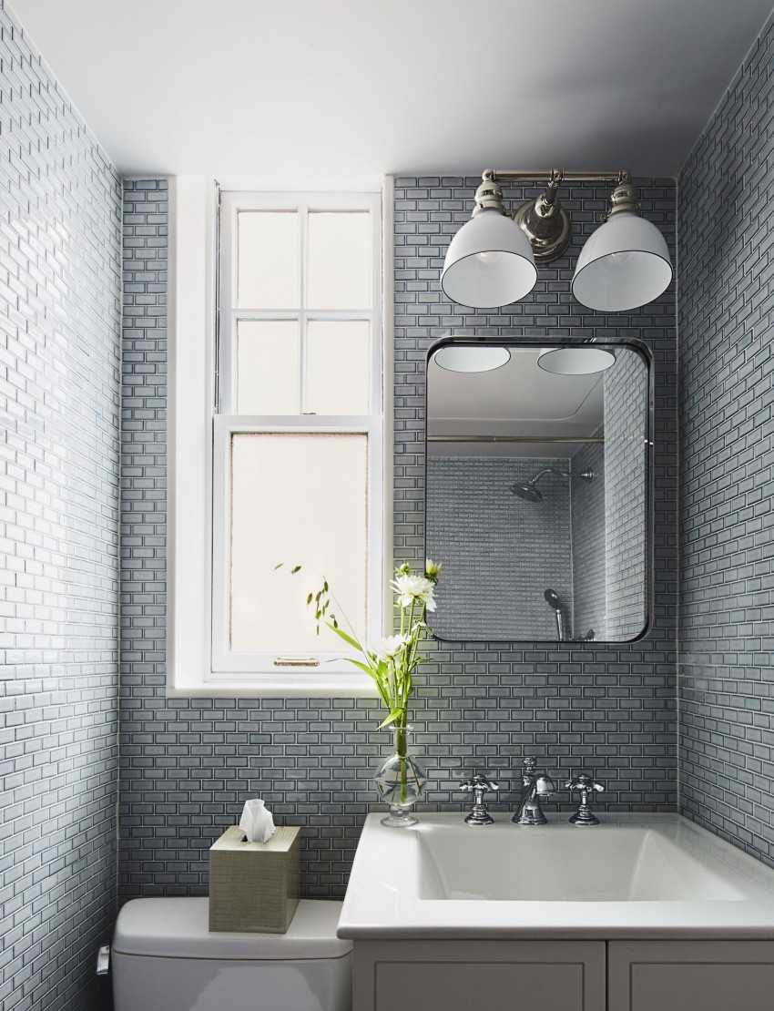 Если помещение максимально маленькое, то сделать его привлекательным поможет керамическая плитка одного цвета, но разных оттенков. Материалом более темного оттенка проводится отделка пола и больших стен, светлая плитка используется для облицовки меньших стен. Благодаря этому можно изменить геометрию помещения, сделав его более уютным и просторным. Также помогут в этом горизонтальные линии, выложенные темной плиткой. Поднять потолки помогут вертикальные линии и более светлые тона, в сравнении с плиткой, используемой для отделки стен и пола.