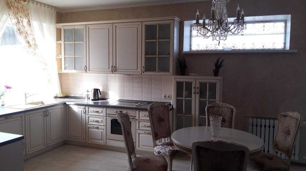 Следует переключить внимание на мебель светлых и мягких цветов, а именно белого и бежевого оттенков. Применение таких тонов в интерьере кухни позволяет визуально расширить пространство