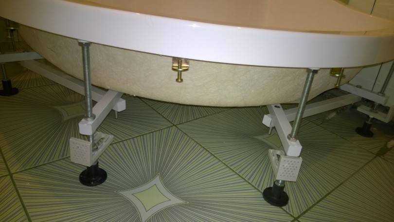 - Обязательно нужно удостовериться в устойчивом положении поддона. При обнаружении пошатывания его устраняют, поворачивая регулируемые пятки ножек.