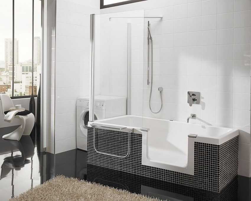 Дуга используется для ванн овальной формы, для изделий асимметричного типа, а также для чаши с округлениями. В дизайне ванной комнаты дуга выглядит достаточно стильно и элегантно по сравнению с другими вариантами.