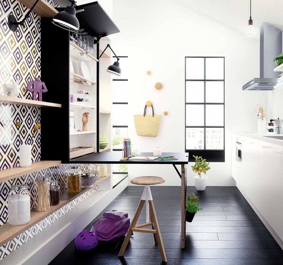 Важно, чтобы кухня не выглядела загроможденной. В данном случае пригодятся советы по выбору складного гарнитура
