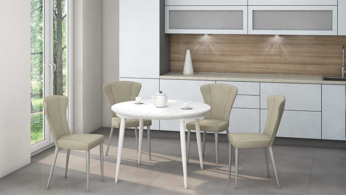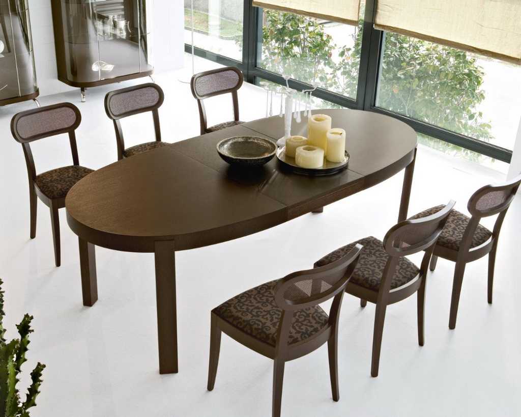 Так, для кухни большего размера подойдет овальная форма раскладного стола. Он вмещает более 5-6 человек. Помимо этого данная форма имеет еще и другие достоинства: