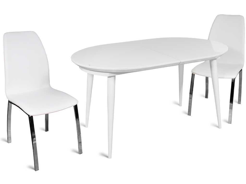 - Стол на хромированных металлических ножках, имеющий стеклянную раздвижную столешницу с фотопечатью. Размеры в сложенном виде — 70×90 см, в развёрнутом — 70×135 см; российского производства.