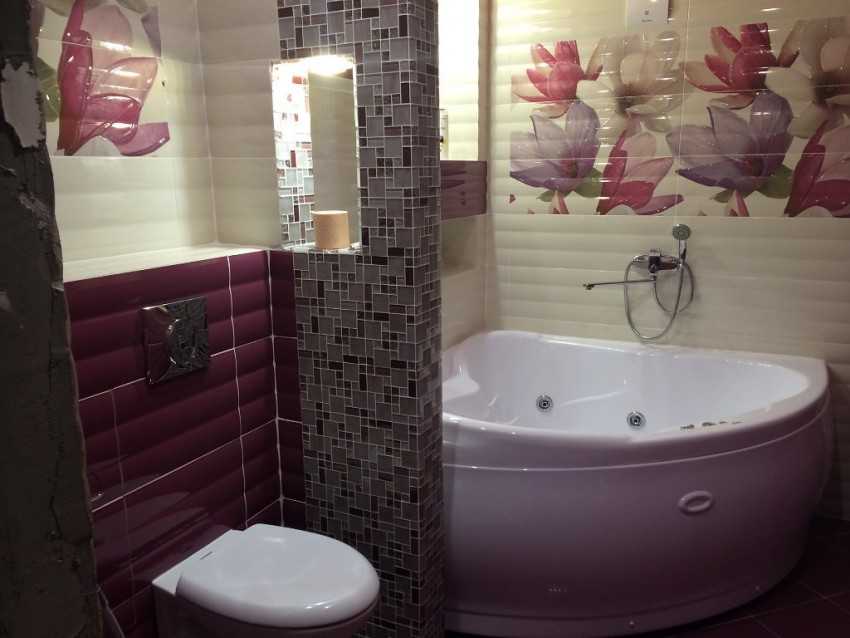 Все рассмотренные выше варианты сохраняют силу и в случае, если вам удалось расширить помещение за счет совмещенного использования с санузлом. Необходимо подобрать лучшие сочетания цвета для плитки в ванной, отделив при этом зону туалета. Обычно делают это при помощи перегородки – она может быть легкой из гипсокартона или более массивной из кирпичной кладки или других материалов.