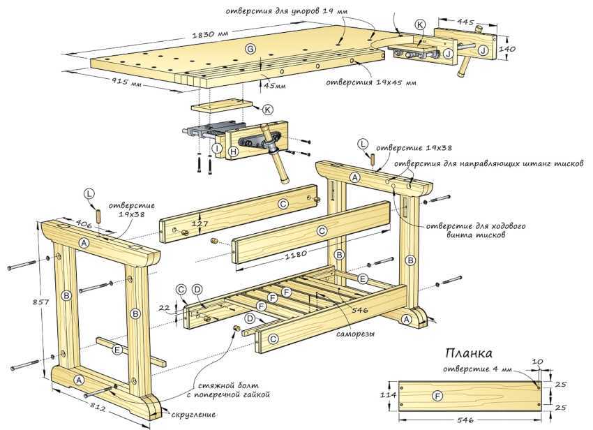 Необходимый инструментарий для мастера, которому срочно понадобился верстак, включает в себя: