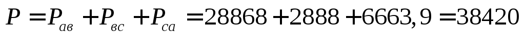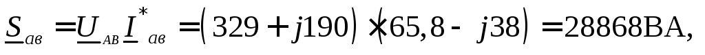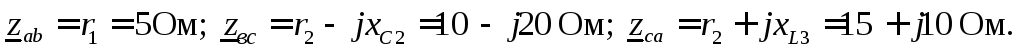 Pобщ=Uа∙Iа∙cosϕа+ Ub∙Ib∙cosϕb+ Uc∙Ic∙cosϕc=220∙10+220∙5+220∙2∙0,5=3520 ВА.