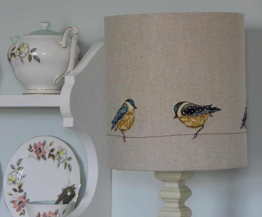 Если этого не требовалось, можно одевать наш абажур на каркас. После этого нужно вручную зашить нижнюю кромку и все – абажур готов.