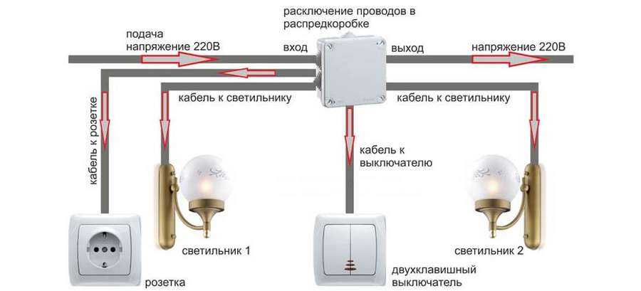 Схема: как подключить люстру на двойной выключатель