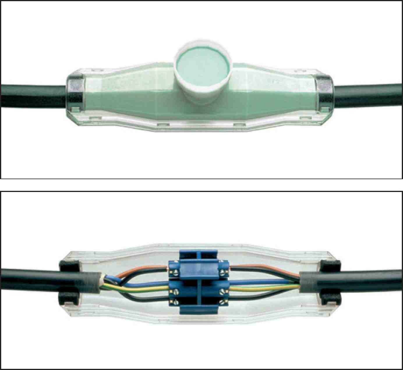 Если соединяемый кабель находится в земле, воде или под дождём, то обычные методы изолирования соединения не подходят. Даже если нанести на кабель слой силиконового герметика и обжать термоусадочной трубкой, это не даст гарантии герметичности. Поэтому необходимо использование специальных муфт.