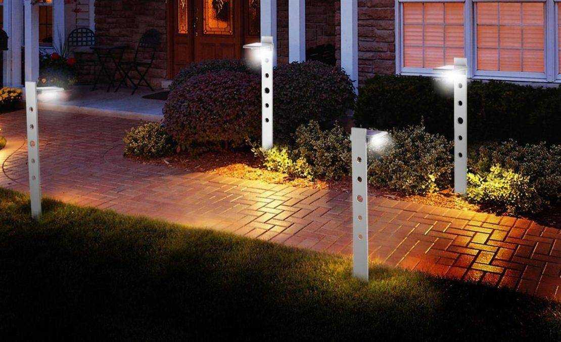 Пример освещения участка дома с помощью светильников на солнечной батарее