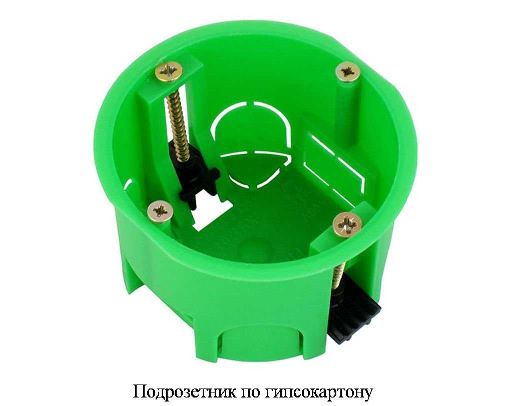 Раньше, эти элементы монтировались в стену, для этого установочная коробка вставлялся в проштроблённое отверстие, где фиксировалась раствором. Для полых конструкций такой вариант не подходит, поэтому на рынке появились специальные подрозетники, предназначенные для гипсокартона.