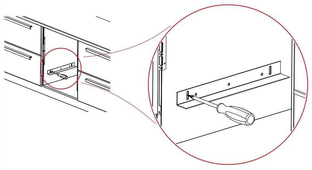 - Когда все соединения выполнены правильно, встраиваемую духовку ставят в нужную нишу, и затем фиксируют с помощью шурупов.