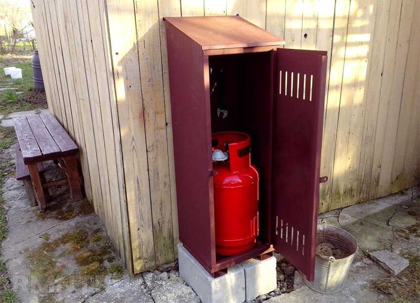 Чтобы сделать установку более безопасной и исключить доступ к газовому оборудованию посторонних лиц, баллоны размещают либо в помещении с отдельным входом, либо в уличном металлическом шкафу