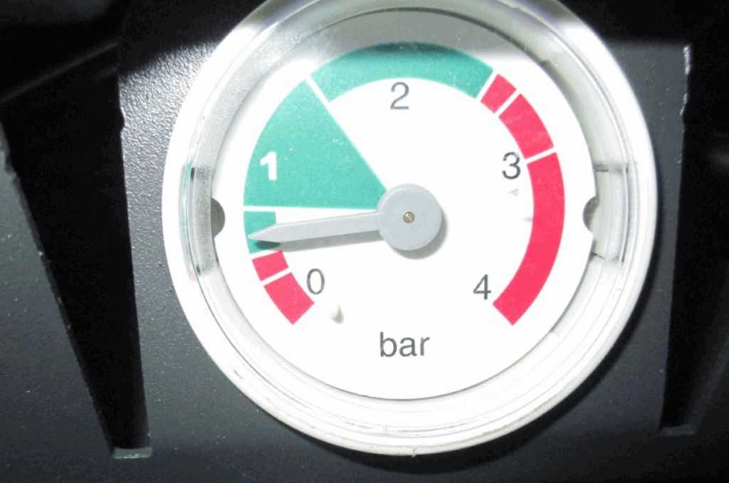 Выключить котел на несколько часов, чтобы он полностью остыл. Найти точку отбора воздуха на первом радиаторе, как правило, в верхней части устройства с одной стороны, и использовать сухую ткань и контейнер, чтобы собрать воду. Постепенно открывать выпускной клапан с помощью ключа радиатора. Появится немного пузырькового воздуха, а также немного воды. Когда поток стабилизируется, плотно закрыть выпускной клапан. Продолжать с другими радиаторами, пока датчик не окажется в зеленом диапазоне