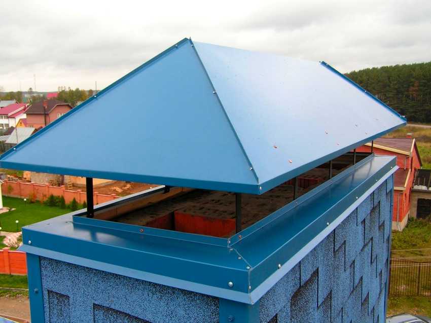 Рассматриваемый колпак может обладать различным сечением. Он оснащен специальным цилиндром. Чтобы добиться бесперебойной работы устройства он должен быть установлен на расстоянии от ста до ста шестидесяти сантиметром выше кровли.