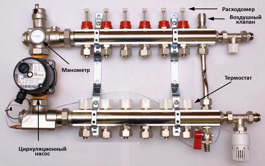 - Расходомеры. Они необходимы для регулировки потока носителя тепла для каждой отдельной петли.