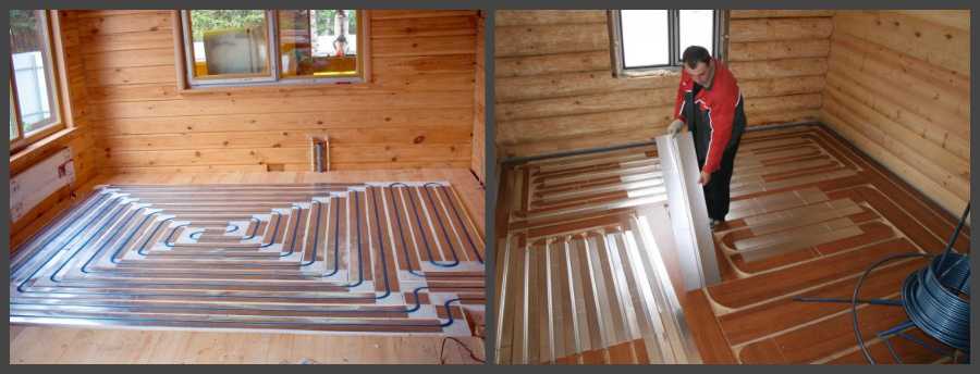 Не все нагревательные элементы системы напольного обогрева можно уложить на деревянное основание. Монтаж водяной и кабельной магистрали требует много времени и кропотливого труда. Маты и карбоновые стержни для деревянного пола не подходят.