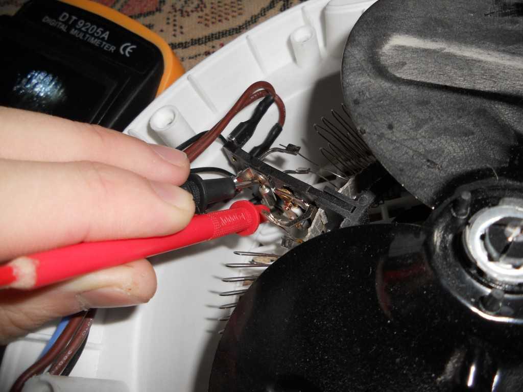 Вторая популярная поломка тепловентилятора – дует, но не греет воздух. В этом случае причиной неисправности, скорее всего, является нагревательный элемент – спираль либо керамический ТЭН. Тут все просто – мультиметром проверяете сопротивление в цепи и если где-то происходит обрыв, нужно заменить нагревательный элемент на новый. Иногда случается так, что обогреватель перестал греть, т.к. поврежден один из участков спирали. В этом случае можно постараться выполнить ремонт тепловентилятора своими руками, соединив нихромовую спираль.