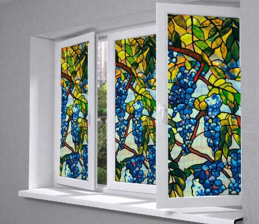 - Декоративная пленка может быть разного цвета. Чаще она имеет рисунки и узоры. Поверхность может быть матовой и глянцевой. Эти покрытия применяют с целью декорирования помещения, но не для защиты от солнечного света, поскольку эта разновидность пропускает ультрафиолетовые лучи.