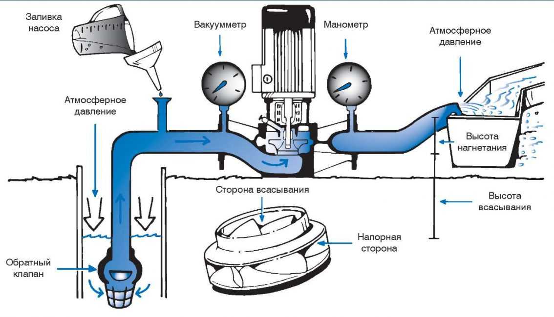 При низком давлении вода переходит в специальный вакуумный отсек, откуда по патрубку мощным потоком вливается в шланг или трубу. Чтобы преодолеть сопротивление гидравлики, система должна обладать достаточной мощностью, чтобы давление было оптимальным для полноценной работы.