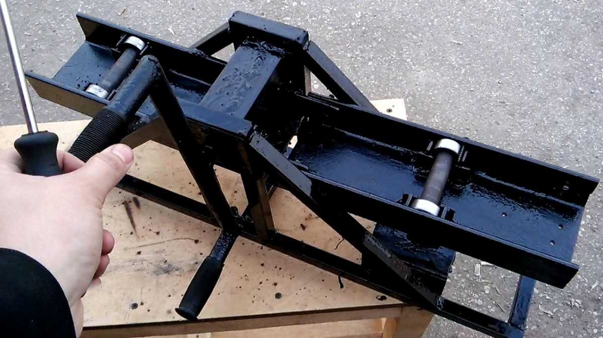 На один вал не забудьте прикрепить ручку. - В завершение на станок нужно установить домкрат, и он готов к работе.