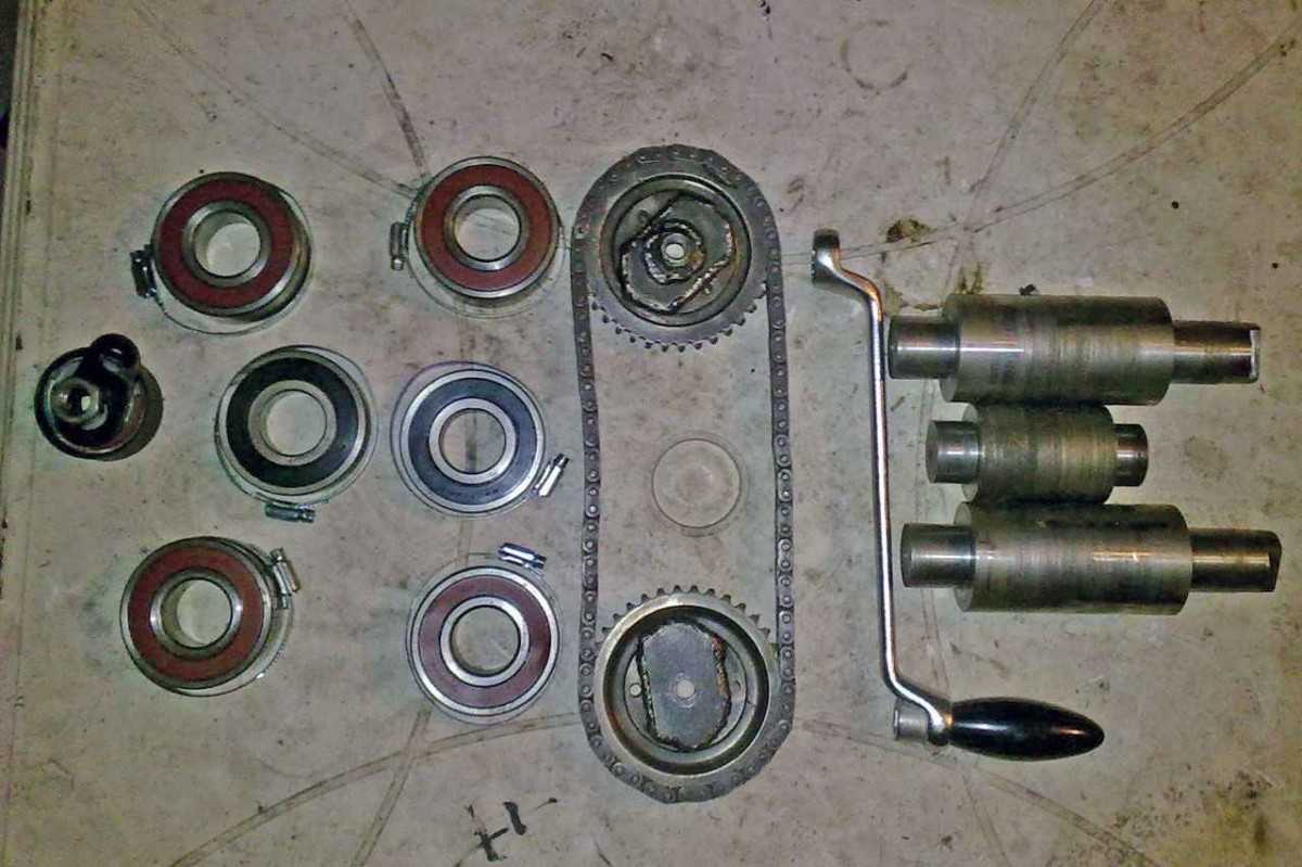 - Внешнюю часть валов аккуратно сточите с двух сторон, чтобы на них можно было надеть звёздочки. Цепь надевайте с лёгким провисом, если сделать охват слишком тугим, на преодоление сопротивления будет тратиться дополнительная сила.
