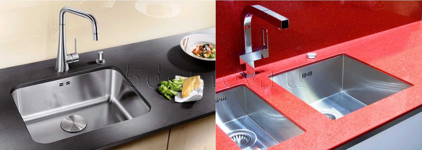 Для этого покупаются специальные раковины для подстольного монтажа. Мойка фиксируется при помощи кронштейнов или шурупов (для дорогих материалов — специальных самонарезающихся винтов).