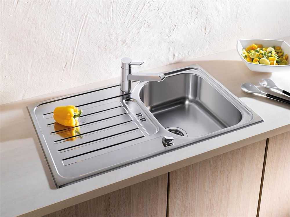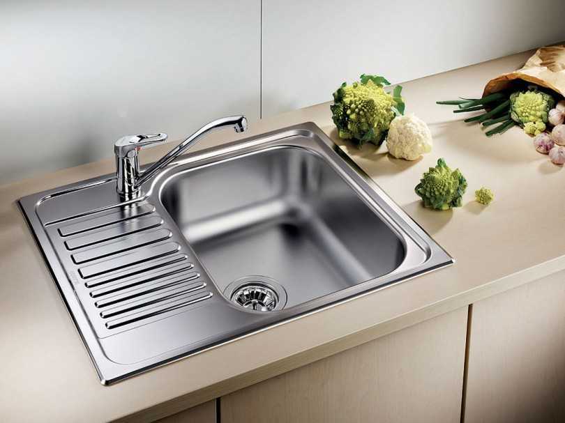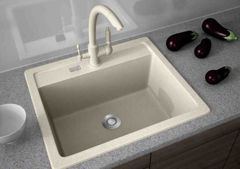 Для функциональной кухни лучше всего выбирать глубокий прибор: в нем можно будет мыть крупную посуду и другие габаритные предметы. Смеситель стоит подобрать невысокий — такое сочетание даст минимум брызг при работе