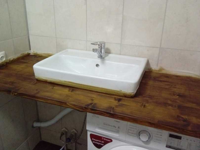 В двух последних способах нужно позаботиться о герметичности. Для этого нанести слой герметика на места контакта тумбы/деревянной площадки с мойкой.