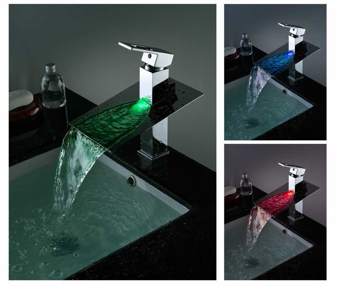Особенную изюминку вносит подсветка самого крана и струи. Причем в конструкции с подсветкой употребляется термодатчик, который изменяет цвет воды в зависимости от ее температуры. Интересен тот факт, что механизм подсветки есть всецело автономным. В кран встроена мини гидротурбина, которая дает достаточно энергии для работы светодиодов и термодатчика.