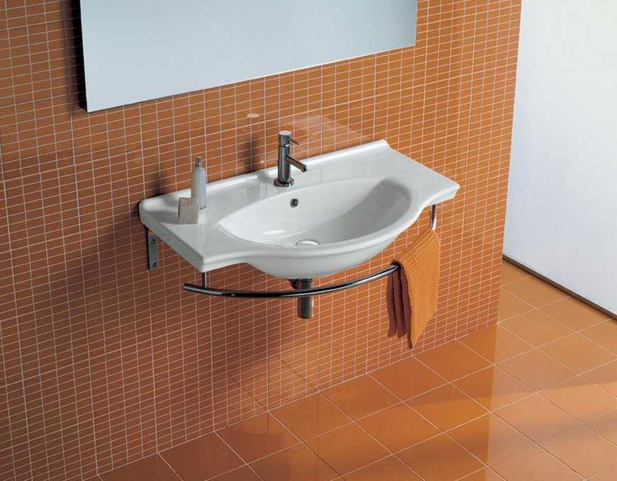 специальные крепления, разработанные для монтажа конкретной модели. Зачастую это эксклюзивные дизайнерские умывальники с необычной формой. Кронштейны для такой сантехники идут в комплекте и могут быть выполнены в виде штырей особой формы, огибающей раковину трубы или необычных сварных конструкций. Такие крепления обработаны специальными декоративными составами (керамическими или металлическими).