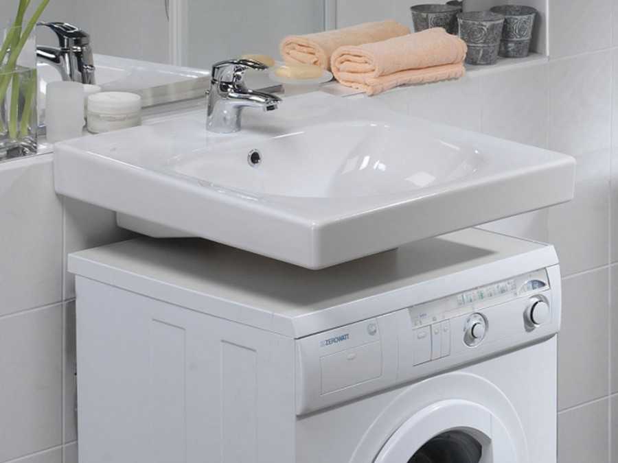 В целях безопасности можно поискать раковину с переливом, что позволит дополнительно защитить стиральную машину от воды.