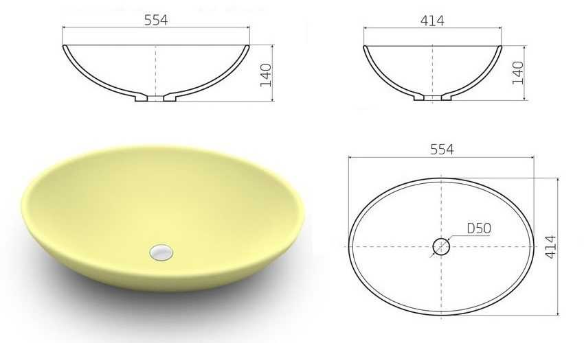 Распространенные размеры накладных раковин (ширина х глубина х высота):