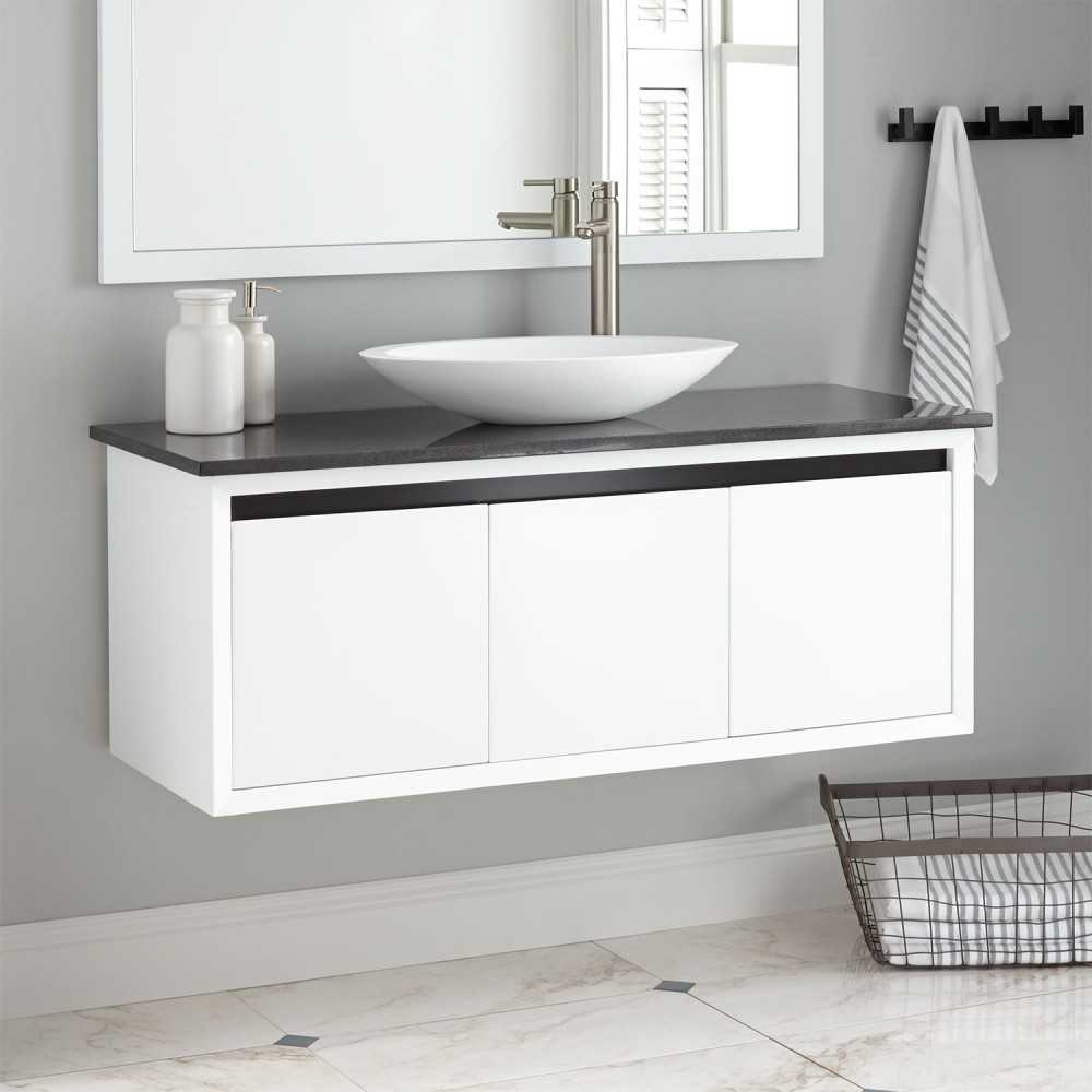 Любителям всего необычного и оригинального подойдет черная подвесная раковина. При соответствующем дополнении подходящими аксессуарами такая мойка будет впечатляющим украшением ванной комнаты.